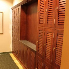 Men’s and Women’s lockers in local Ft. Myers Country Club. Maple open louvre doors by Walzcraft.